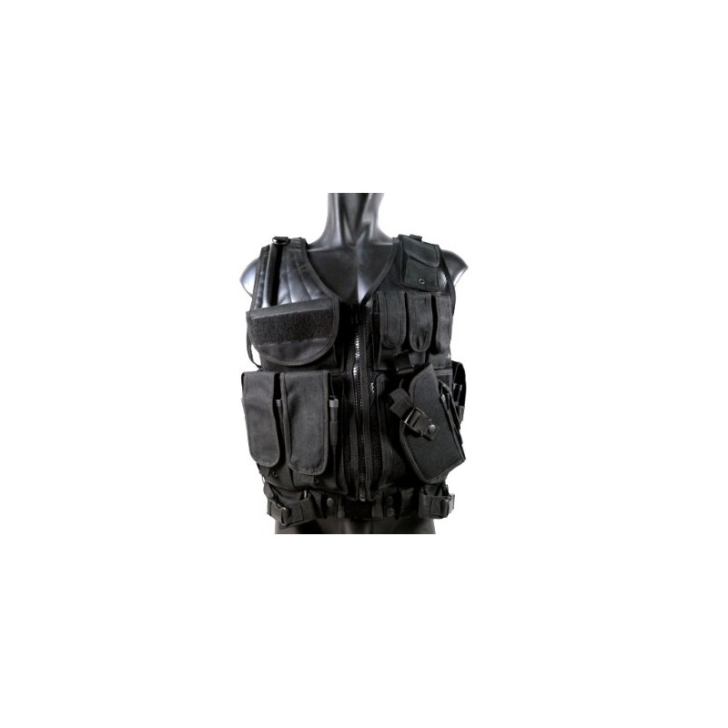 MetalTac Airsoft Cross Draw Tactical Vest with 9 Pockets and Pistol Holster