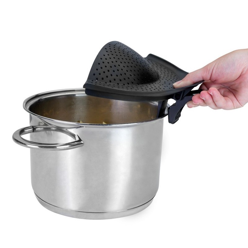 Metaltex 111502038 Abgießhilfe "Clip On" mit Halteclip, Kunststoff, schwarz, 28 x 14 x 1,5 cm