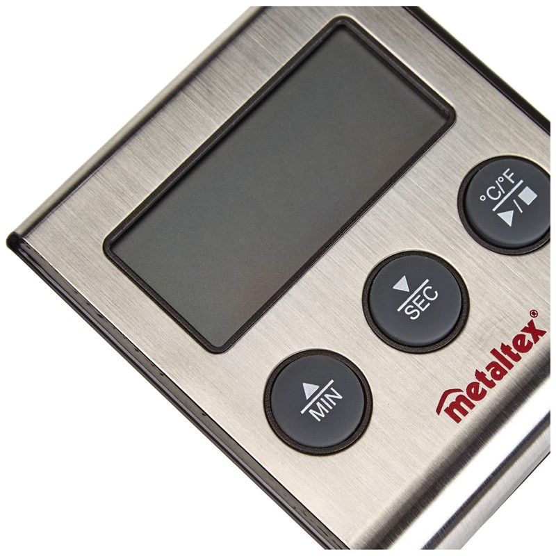 Metaltex Digital Kitchen Thermometer with Probe and Timer, Stainless Steel, Grey, 20 x 20 x 6 cm
