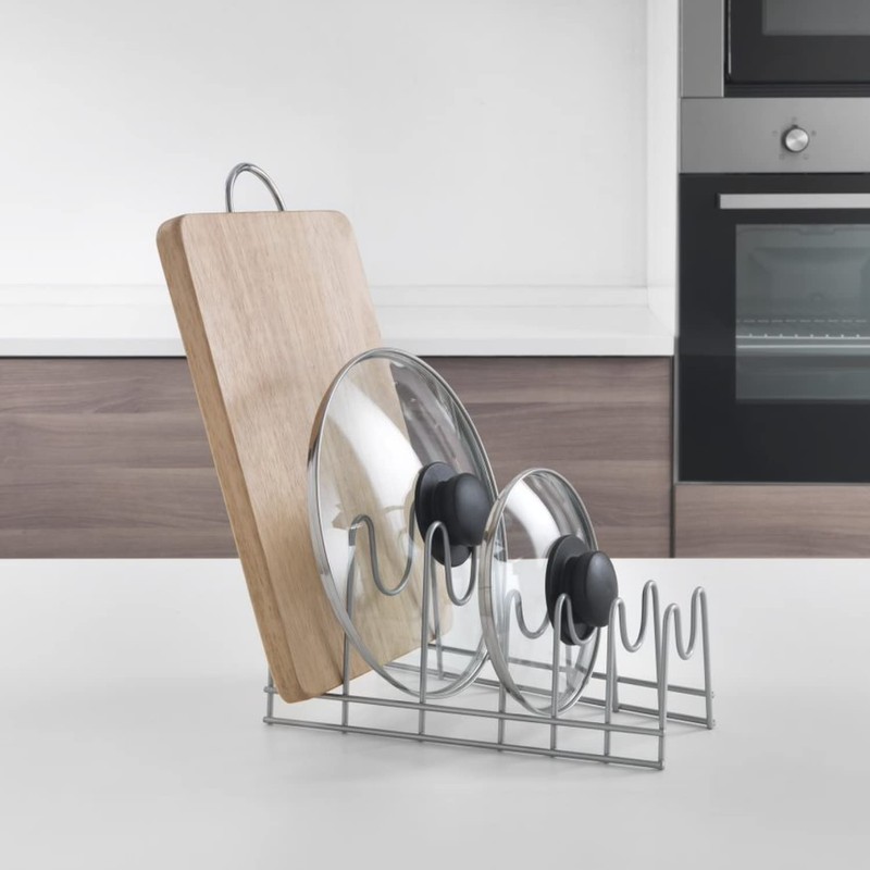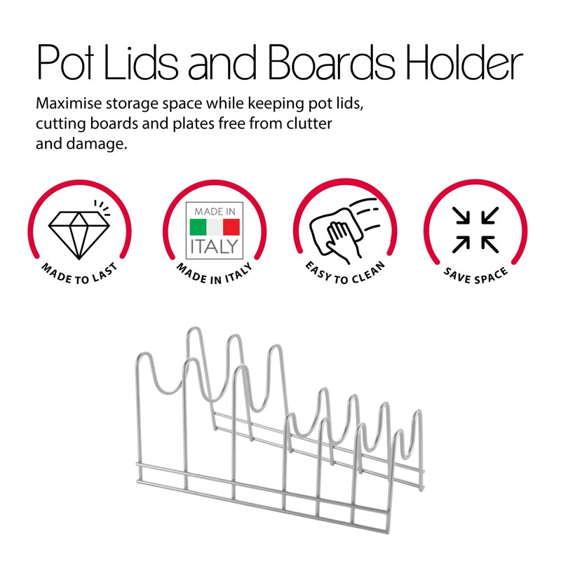 - Holds up to 6 pot lids