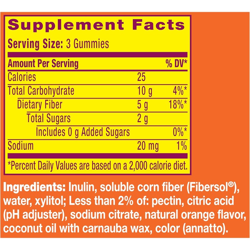 Looking for a tasty, sugar-free way to support your digestive health? Metamucil Fiber Gummies deliver! These orange-flavored gummies contain 5g of plant-based fiber, including prebiotic inulin and soluble corn fiber (Fibersol***), to promote digestive balance and feed good gut bacteria.* From the trusted makers of the #1 selling fiber supplement brand.