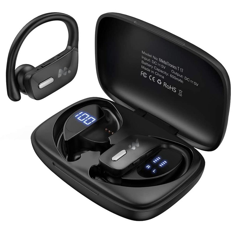 MetaTronics Wireless Bluetooth Earbuds with Microphone & EarHooks Portable Charging Case | IPX5 Waterproof Technology | Ideal for Music & Podcasts | Sports Earbuds
