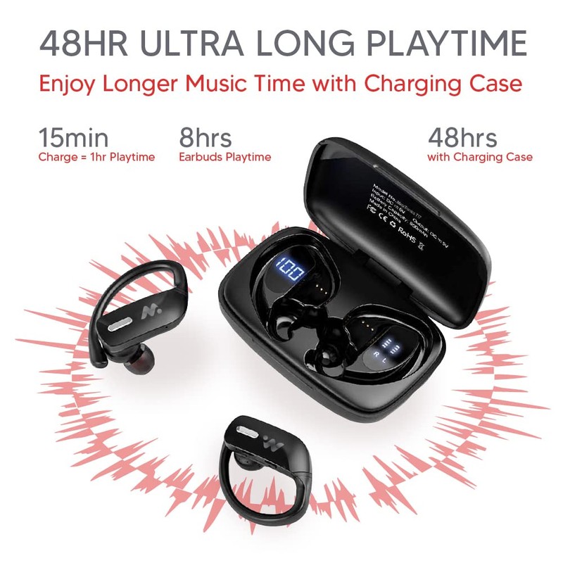 • What You Get: 1x Bluetooth Earbuds with EarHooks & Charging Case 1 x User Manual 2x Sets of Different Size Earbuds