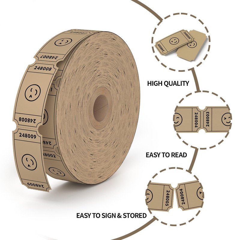 - Each Tickets 1''x2'', Brown Smile raffle Tickets Single Rolls, 1000 tickets