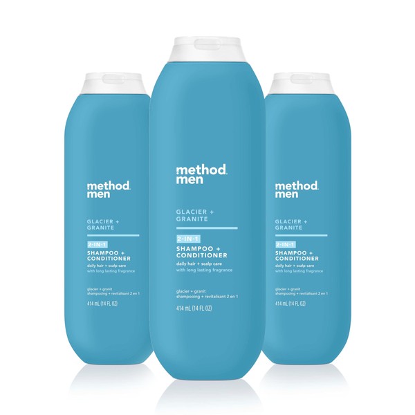 Method Men 2 in 1 Shampoo and Conditioner, Glacier + Granite, 14 oz (Pack of 3)