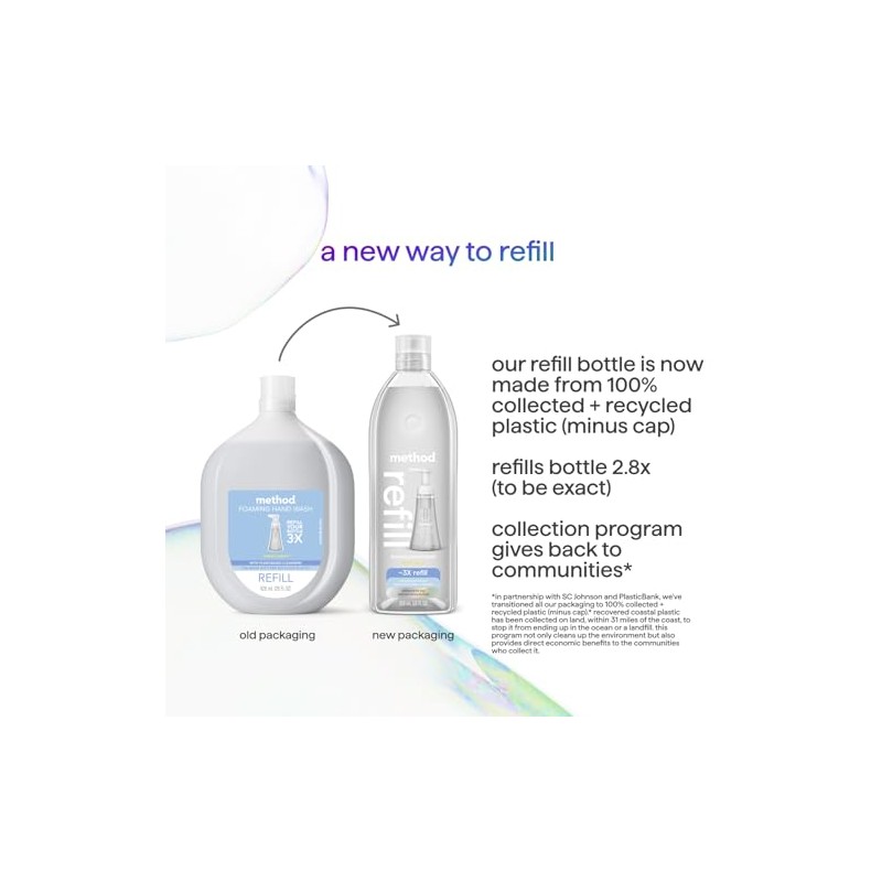 Method Method Foaming Hand Soap, Refill, Sweet Water, Recyclable Bottle, Biodegradable Formula, 28 oz, (Pack of 1) (Packaging May Vary)