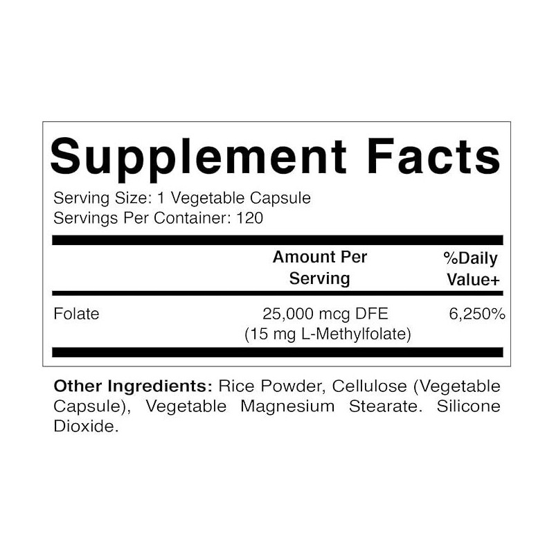 **L-Methylfolate 15mg (Folate 25000 mcg) Maximum Potency Active 120Caps**