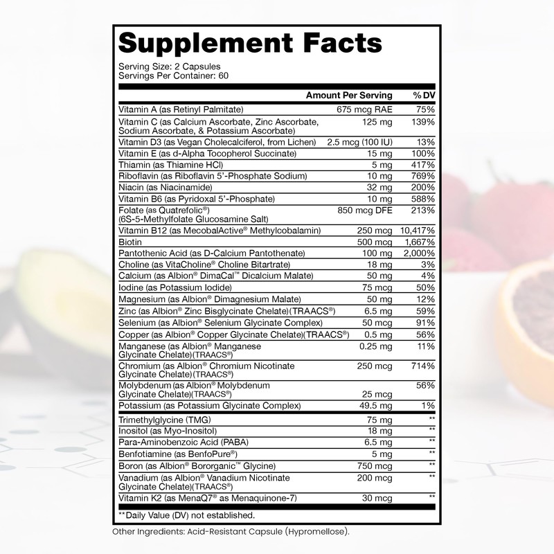 Methyl Multi Without Iron Methylated Multivitamin for Men & Women, 60-Day Supply | Methyl B12 & Methylfolate (5-MTHF) for MTHFR Support | Pharma Grade Multivitamin & Multimineral For Health, 120 Caps