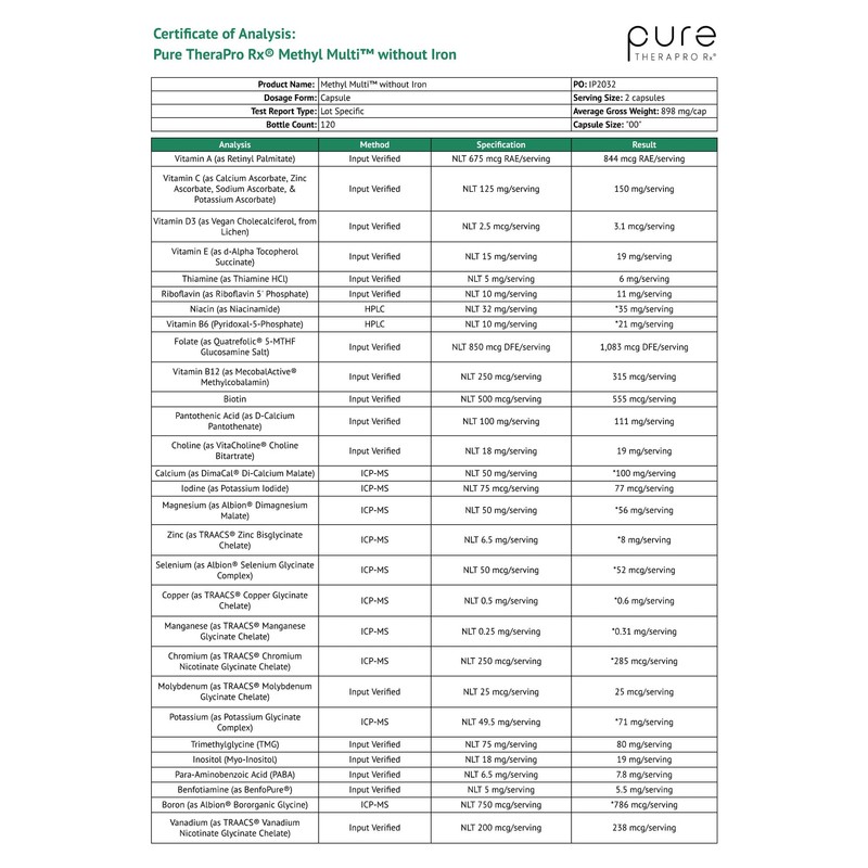 Pure Therapro Rx Methylated Multivitamin for Men and Women | Made in USA | Methyl Multi Without Iron Methyl B12 & Methylfolate | 120 Capsules, 2-Month Supply