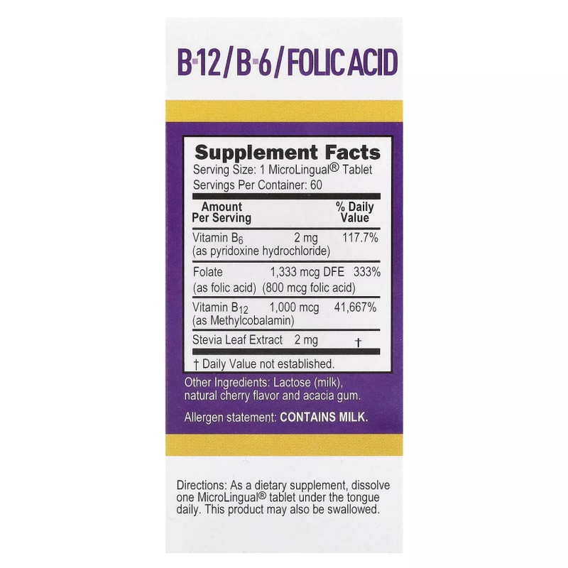 Methylcobalamin B-12, B-6 & Folic, 60 MicroLingual® Instant Dissolve Tablets