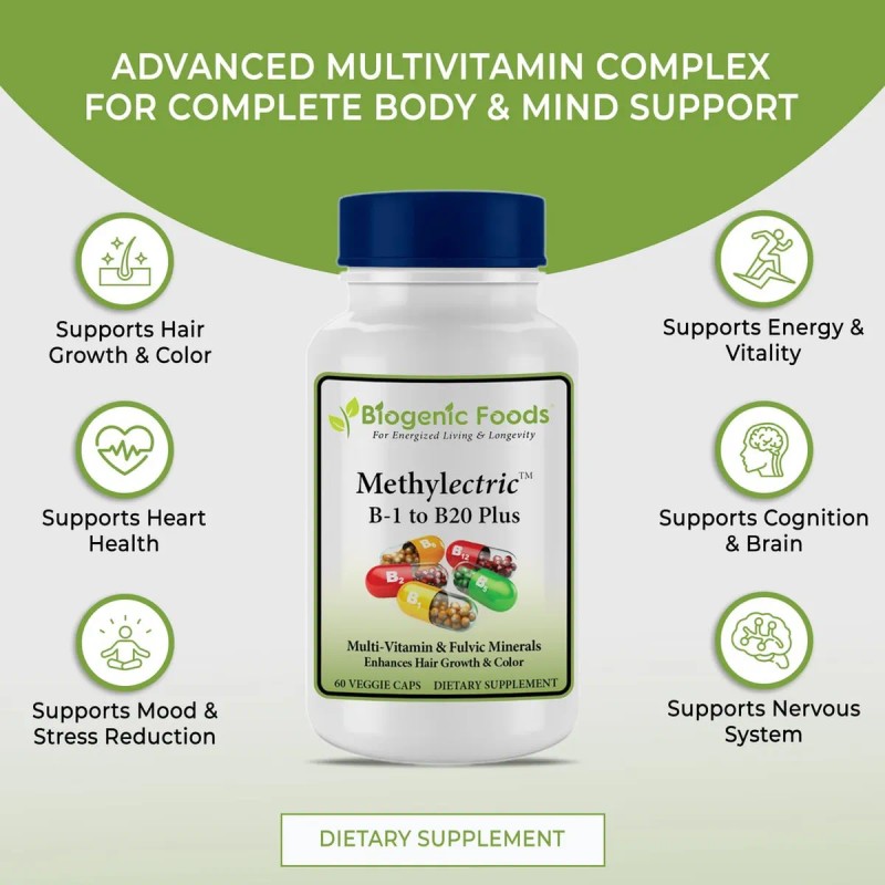 - Fórmula poderosa de complejo B metilado: Experimenta el máximo apoyo con nuestra fórmula Methylectric B-50 Complex. Contiene todas las vitaminas B esenciales (B1-B20) en sus formas metiladas para optimizar absorción y utilización.