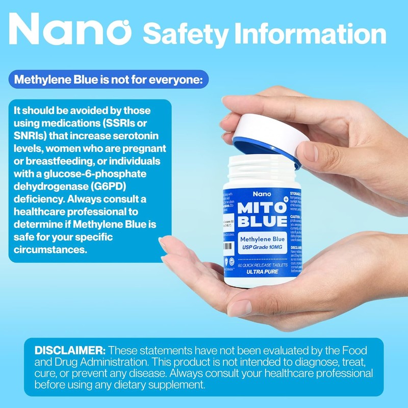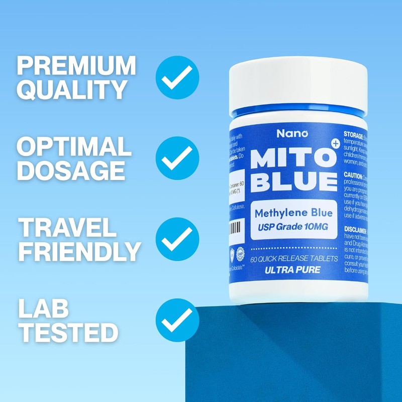 Whether you're seeking Methylene Blue capsules, Methylene Blue pills, or simply the most reliable Methylene Blue tablets, you can trust that our product stands out for its purity and effectiveness. Each batch is third-party tested and formulated to the highest standards using only the finest Methylene Blue USP grade ingredients.