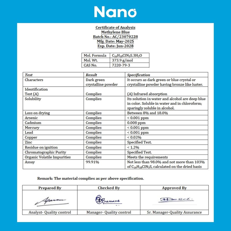 - SUPERIOR PURITY & SAFETY: Third-party lab-tested and sold in a sealed UV protective bottle, our Methylene Blue is USP pharmaceutical grade indicating the highest quality and purity standards (>99.9% pure). This product is free of heavy metals, microplastics, and formaldehyde.