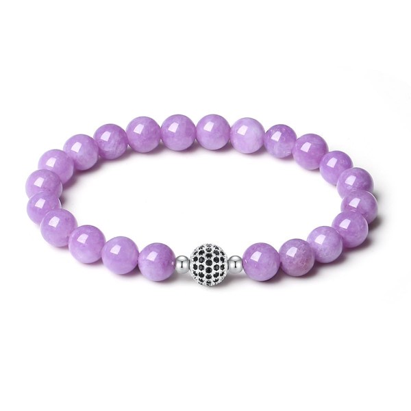 MetJakt Handmade Original Healing Crystal 8MM Gemstone Stretch Bracelet for Women with 18K Platinum Beads Cubic Zirconia Micro Pave Black Diamond Setting (Phosphosiderite)