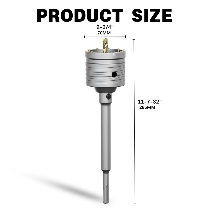 METOTY 2-3/4" Concrete Hole Saw,70mm Masonry Hole Saw, with 220mm SDS Plus Shank Connecting Rod for Concrete Brick Cement Stone Wall Drilling Home Improvement