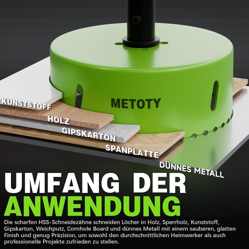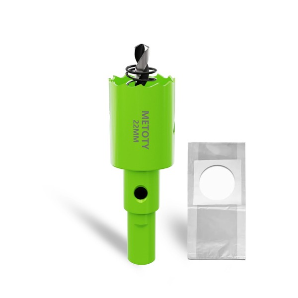 METOTY 22 mm Bi-Metal Hole Saw, Universal HSS M42 Hole Saws, with Triangular Shank Adapter and Pilot Drill, A Free Dust Bag for Aluminium, Metals, Plastics, Acrylic Glass, Wood, Plasterboard