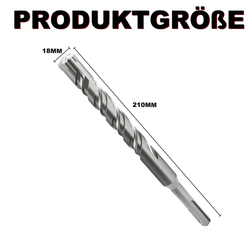 METOTY SDS Plus Drill Bit 18 mm x 210 mm, Masonry Drill, Hammer Drill, Concrete Drill, for Stone, Concrete, Natural Stone, Brick Wall