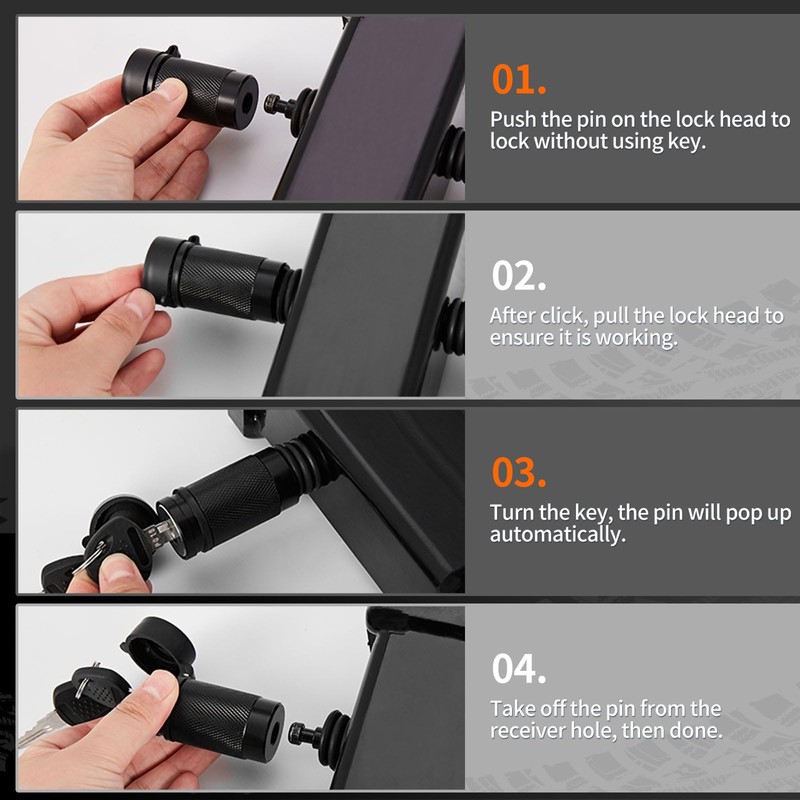 - RUST PROTECTION& DURABILITY - The electrophoretic paint on the surface of hitch lock with the addition of its watertight rubber cap, keep rust at bay even the lock always get soaked on any journey over wet or snowy roads, and keep the keyhole away from water and dirt.