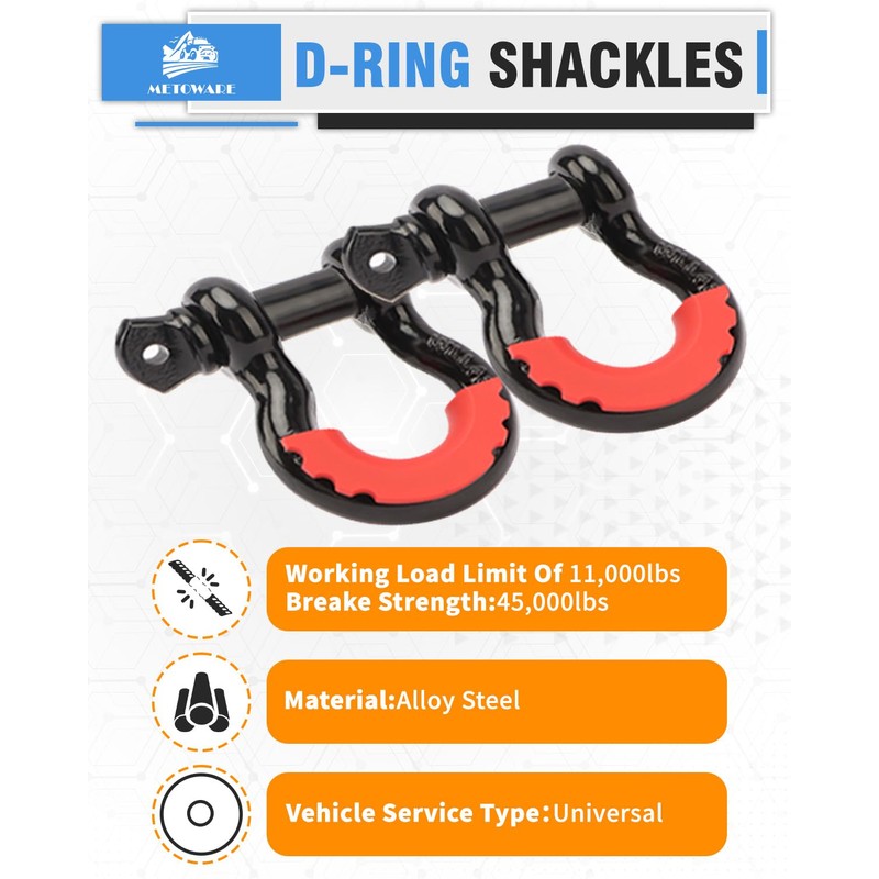 - D RING SHACKLES: Ultra-safe D-ring shackle with electro galvanized coating and silicon bumper protector. Lab Tested and Certified 45,000lbs Capacity!