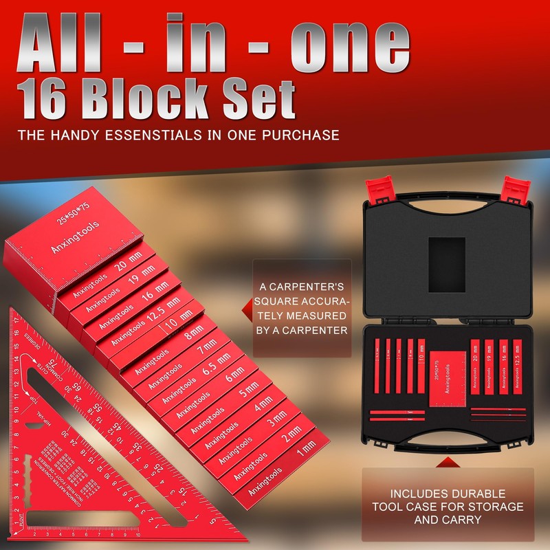 - CONVENIENT TO USE : These setup gauge block come with a handy storage case, keeping them in organized and neat. 15 different blocks allow you set up easier, faster and more accurately than using a combined ruler, especially when you need to change heights and distance constantly.Combine bars to setup 100's of measurements. Stack setup bars for a wide variation or sizes, or use on their own, work and measure quickly.