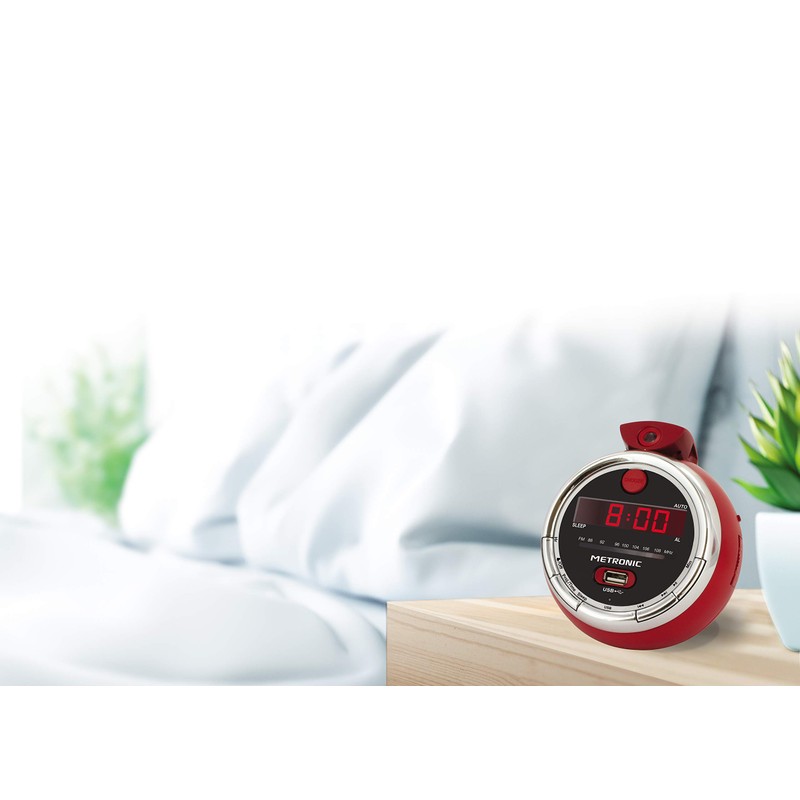 Metronic 477024 Radio Alarm Clock with Projection Radio FM Red Display Cherry