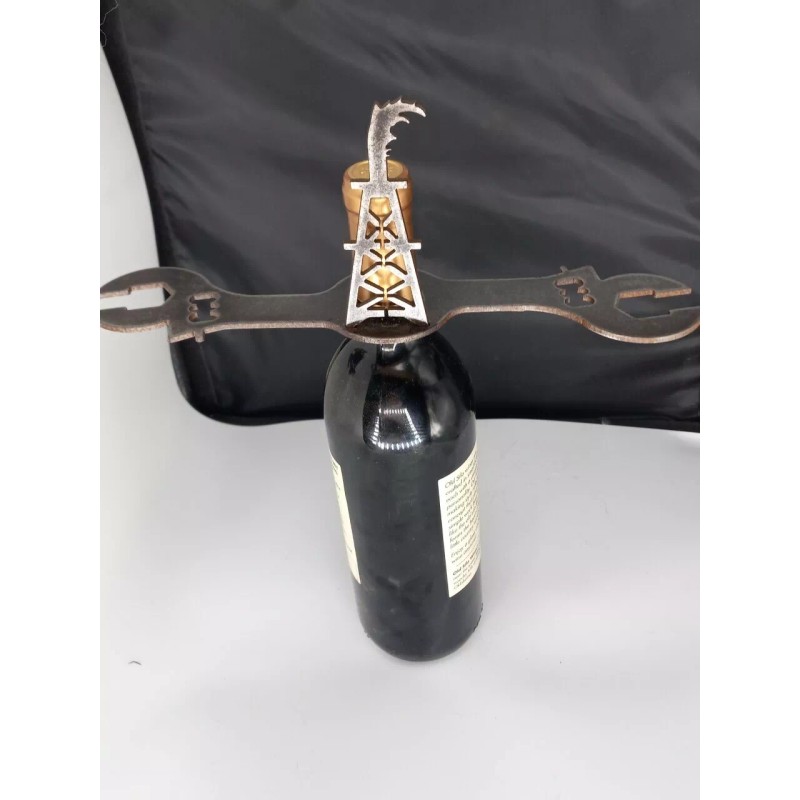 Metrotex Laser Cut Oil Derrick With Flame, And 2-Stem For Long Glasses, Bottle Topper
