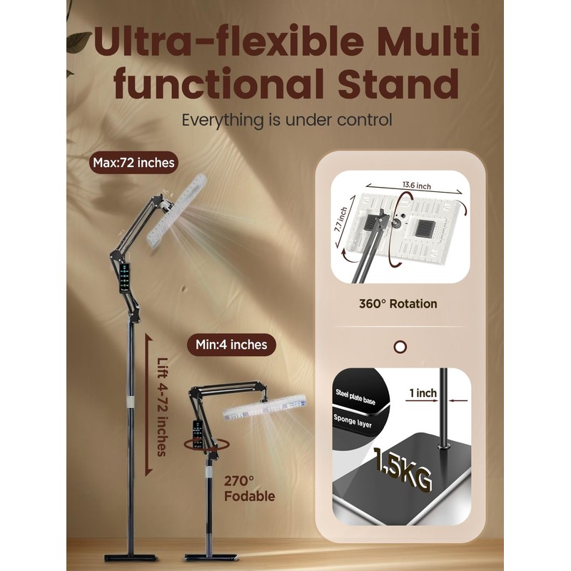 - 【Flexible and Adjustable】: Whether you prefer a hanging setup or freestanding support, our light adapts effortlessly. The robust 1-inch diameter steel support poles are adjustable from 4 to 72 inches in height and allow for 270° folding and 360° rotation. This unparalleled versatility accommodates various plant growth scenarios, from seedlings to mature plants, making it ideal for grow lights for seed starting and plant grow lights indoor.