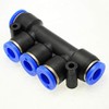 Features: Designed for Polyurethane or Nylon tubing. Quick and Reliable connections. Reusable: Multiple connections/disconnections. Convenient elliptical sleeve configuration. Specifications Fluid Type: Air. Operating Pressure: 0- 145 PSI / 0 - 9.9 kgf / cm2 (0-990kPa). Working Temperature: 32-140°F / 0-60°C. O-Ring: NBR (Acrylonitrile butadiene rubber). Plastic Body: PBT (Polybutylene terephthalate). Packing: NBR (Acrylonitrile butadiene rubber). Back Ring: POM (Polyoxymethylene plastic). Lock Claws: Stainless Steel. Collar: Zinc Alloy. Sleeve: POM (Polyoxymethylene plastic).
