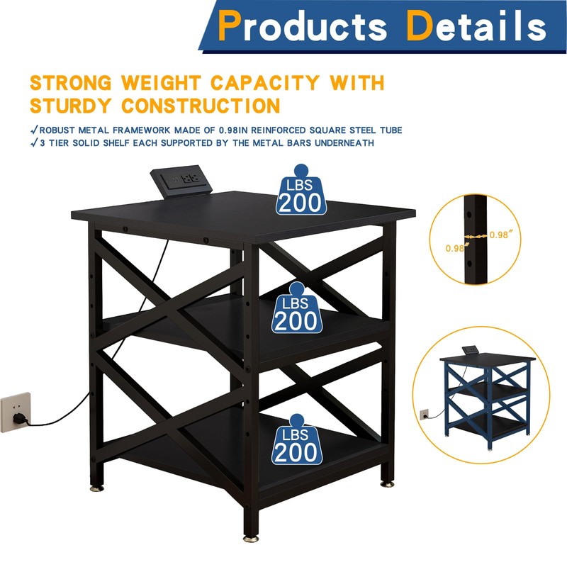 - 【Sturdy and Heavy&Built-in Power Outlets】each shelf is reinforced with a sturdy steel tube underneath for enhanced stability and impressive weight capacity. Built with premium particle board Printer table with charging station contains 2 power outlets and 2 USB charging ports