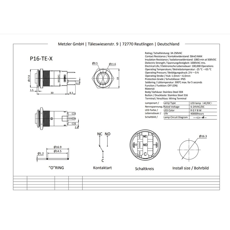 - HIGH QUALITY CONSTRUCTION The protruding 16mm diameter LED push button is made of high quality V2A stainless steel and offers a durable construction that meets IP67 protection standard. This makes it dust and waterproof and extremely durable.