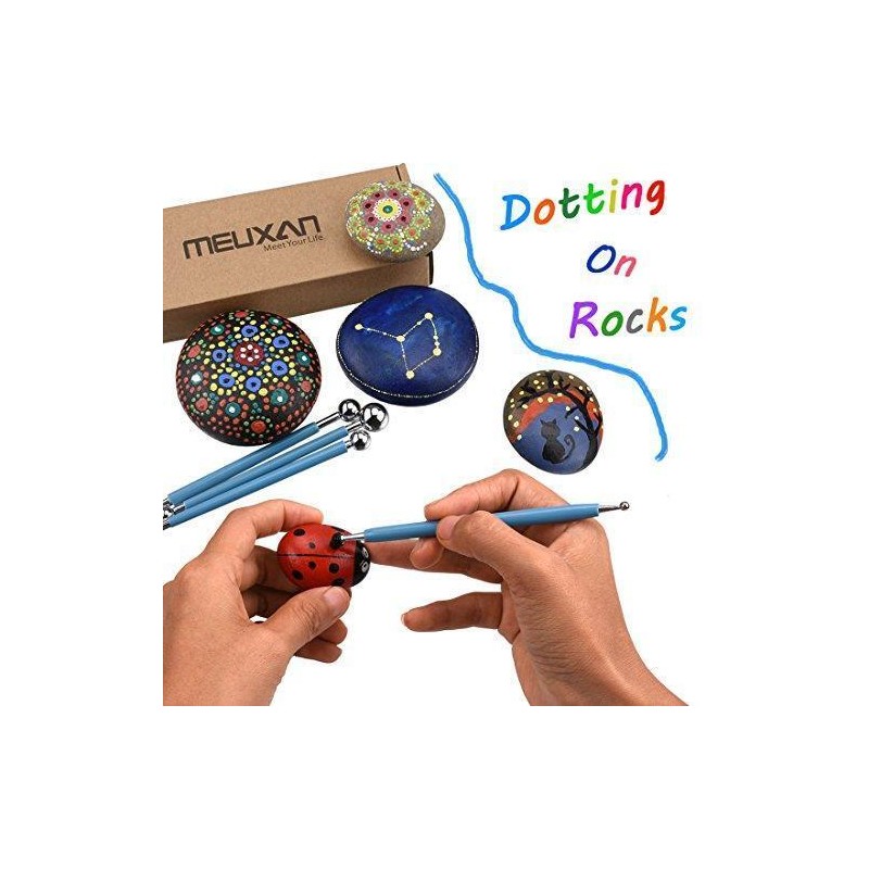 What You Can Do with Meuxan 10Pcs Ball Stylus Set - Painting dots on rocks, canvas, gourd art and more - Making small and large dots, blending seams in clay - Making clay dolls - Making paper flowers SPECIFICATION - Length: Between inches - 14 Ball End Sizes (Diameter): 0.8/1/1.5/2/2.5/3/4/6/8/10/11/13/16/18mm - Materials: Rubber, Wood, Stainless steel WHAT YOU GET - Blue Rubber handle ball stylus * 4 - Wooden handle dotting tool * 6 - Lifetime Customer Support“Buy It Now” items require immediate purchase.