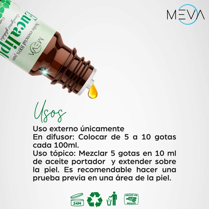 MEVA ACEITE ESENCIAL 100% PURO DIFUSOR MASAJE 10ML (EUCALIPTO)