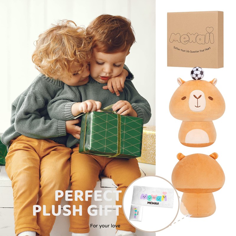 Mewaii 14 Inch Mushroom Plush, Brown Camel Plush Pillow Soft Plushies Squishy Pillow, with Football Plush Animals Kawaii Plush Decoration Gift for Girls Boys