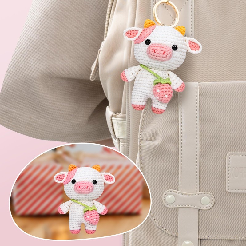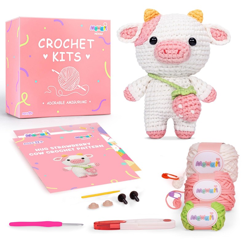 Mewaii Crochet Kit, Crochet Kit for Beginners with Easy Peasy Yarn, Complete DIY Kit Crochet Starter Kit with Step-by-Step Video Tutorials, Hug Strawberry Cow