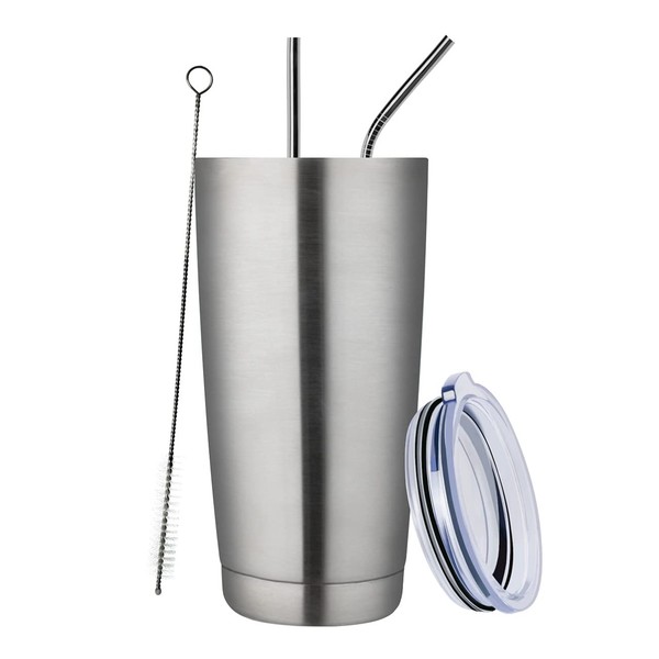 MEWAY Vaso de 597 ml 20 onzas con tapa y pajita, vaso de café de acero inoxidable de doble pared a granel, aislado al vacío, taza de café duradera con recubrimiento en polvo,1 paquete