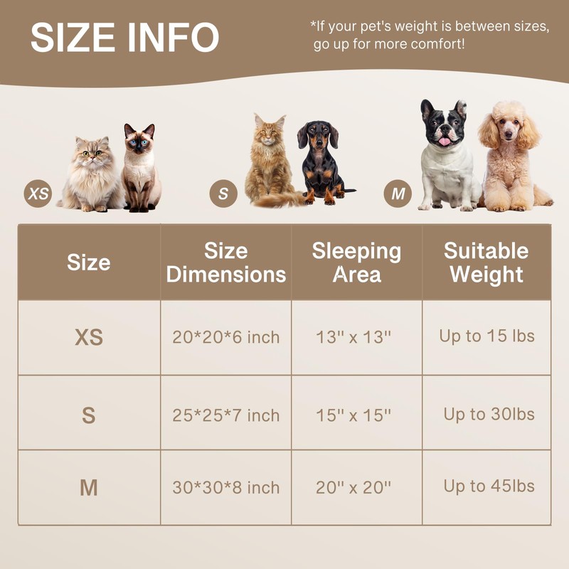 - Versatile Options: The sleek, neutral design blends effortlessly with any home decor, making it an ideal present for pet lovers. This plush cat bed also comes in various sizes and colors. Not sure about sizing? We recommend going one size up for extra comfort!