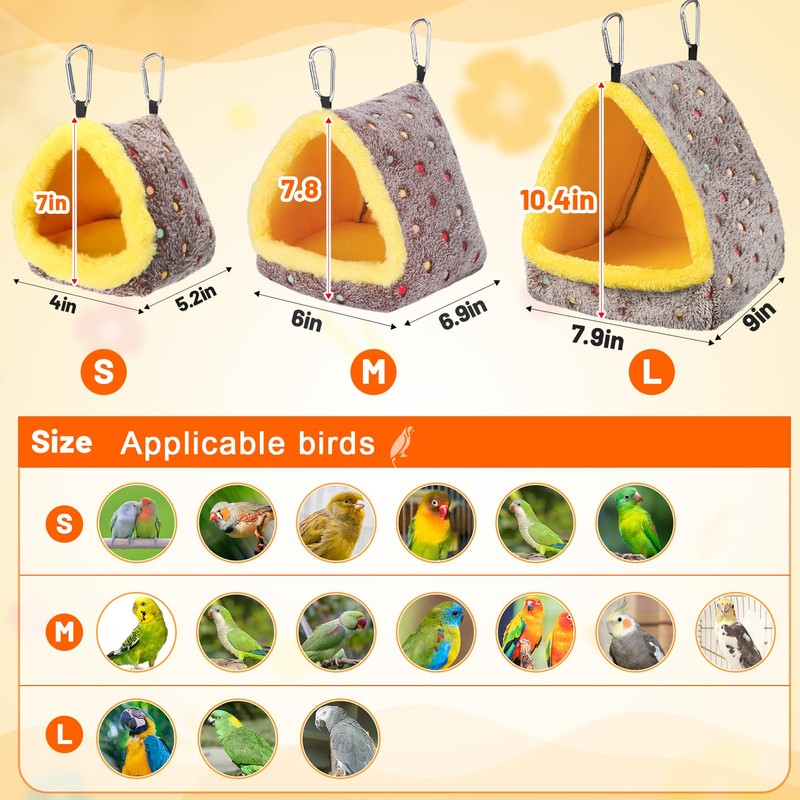 - Warm Material: Made of reliable plush material that is soft, comfortable and warm. The yellow lining enhances the cozy appearance, attracting birds to enter willingly. Additionally, it is a perfect accessory for decorating bird cages or homes.
