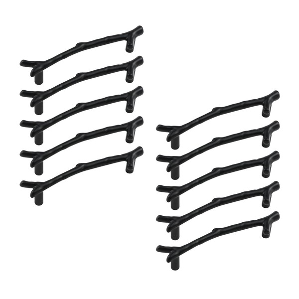 Mewutal 10PCS Tree Branch Shape Cabinet Knobs Pulls Zinc Alloy Drawer Knobs Decorative Twig Shape Dresser Handles for Home Decoration Furniture, with Screws (Black, 96mm Hole Center)