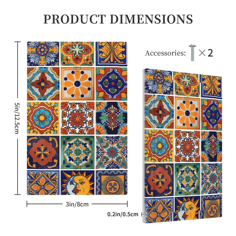 - 【Standard Size】This Mexican talavera tiles boho light switch cover plate decorative is 5" x 3".Package contents 1 light switch cover plate 2 painted screws.
