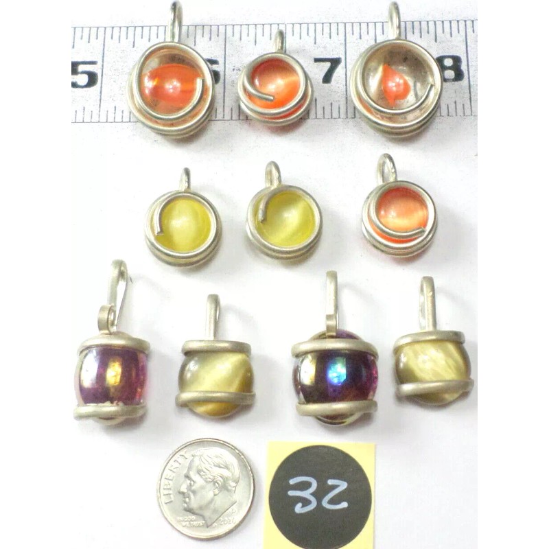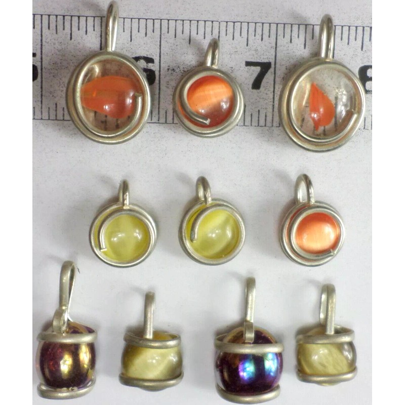 Mexico 10 Multi-Colored Cat Eye Wire Wrapped Mexico Alpaca Silver Pendant All Sizes B32