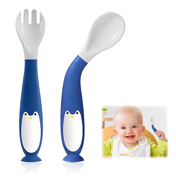 MEXRUMI 1 Set Baby Cutlery Set Children's Cutlery Set Made of TPE PP Cutlery Set Including Fork Spoon (Blue)
