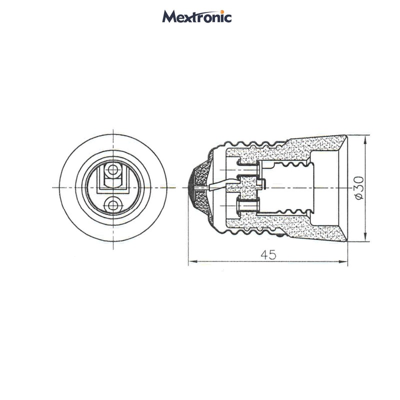 Dimensions: O30 x 45.3 mm (outer E27) x 21 mm (inner E14).