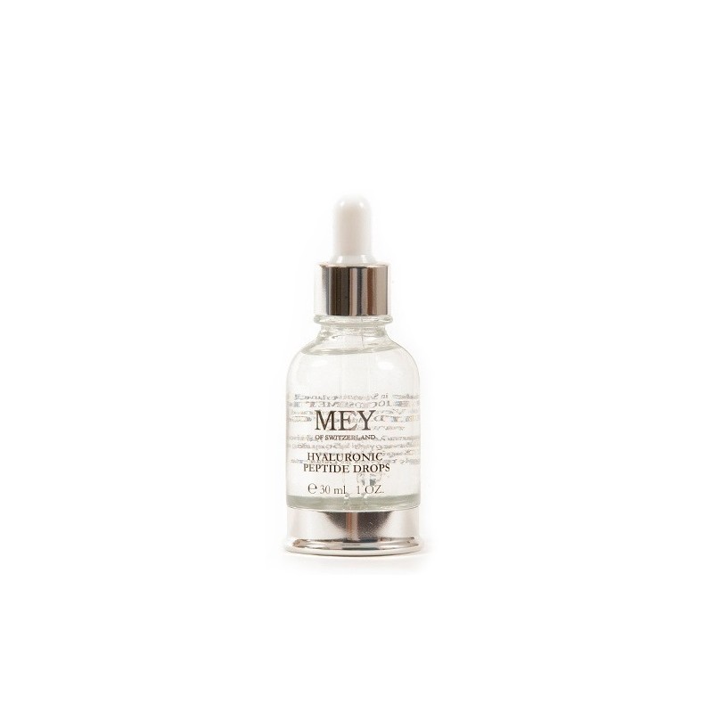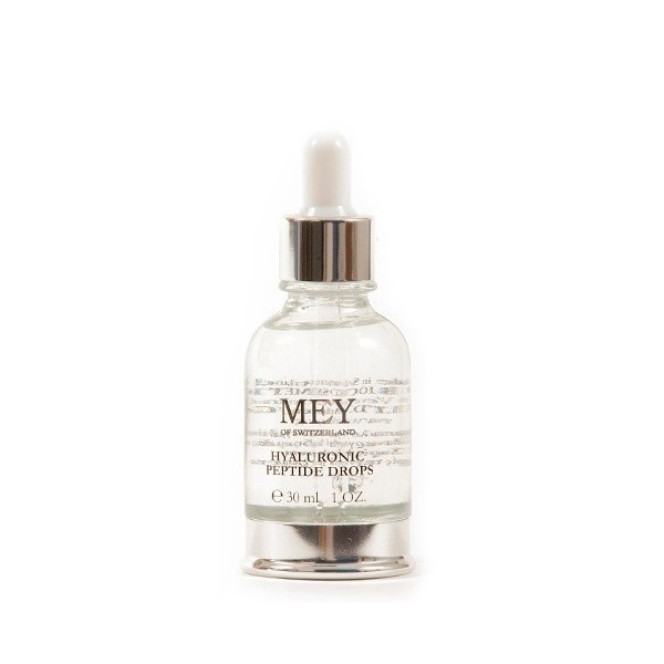 The MEY HYALURONIC PEPTIDE DROPS is a - 24-hour application - advanced anti-aging treatment that rejuvenates the skin by enhancing the repair process of DNA - the most important component of skin cells - and promotes cellular longevity . The MEY HYALURONIC PEPTIDE DROPS is rich in hyaluronic acid, which creates a protective film on the skin and keeps the skin youthful and healthy because of the intense moisturizing action . The active ingredient BioNymph peptide reduces the production of free radicals and promotes the synthesis of new collagen . The extract of watermelon to act protective against skin redness caused by the radiation UV, whereas panthenol has anti-inflammatory , protective and moisturizing action . This unique blend of active ingredients significantly reduces the depth of wrinkles , smoothes fine lines and maintains the elasticity and stimulating the skin , providing smooth and soft look .