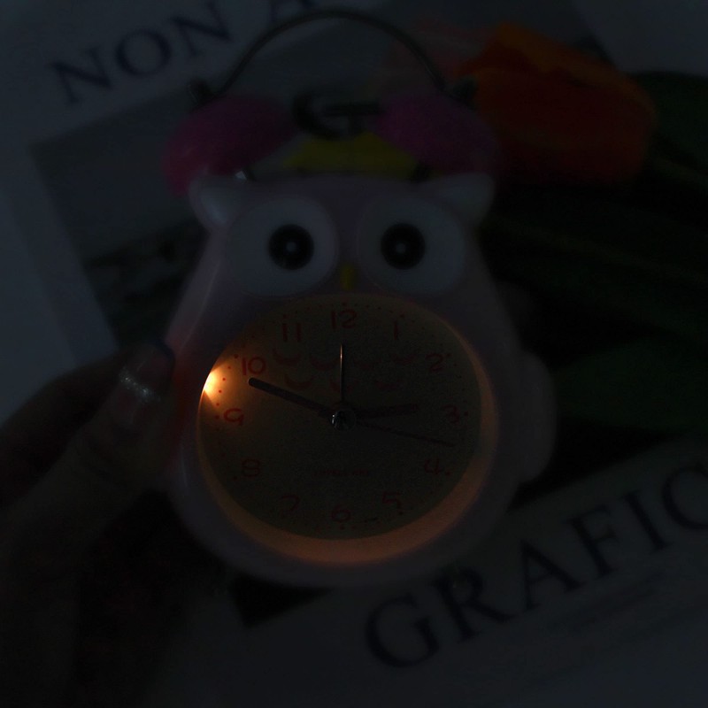 Meyaus 3in Small Owl Twin Bell Loud Metal Alarm Clock Silent Analog Quartz Nightlight Clock