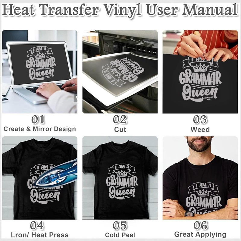 5: Check whether the target object is suitable for the heat press machine or electric iron before ironing. Please make a sample iron with a small piece of vinyl pattern to test the temperature and pressure before DIY. 300°F-320°F is recommended.