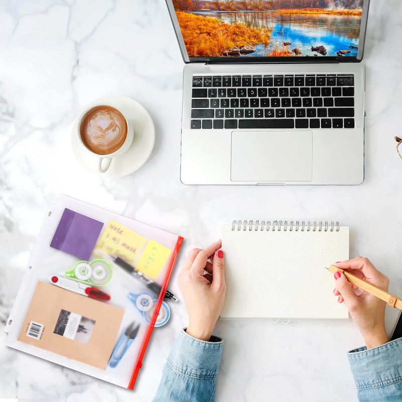 - 3-hole-punched Design: The binder zipper pouches designed with 3-hole-punched fit standard 3-ring binders and folders, and can be stacked neatly for saving space.