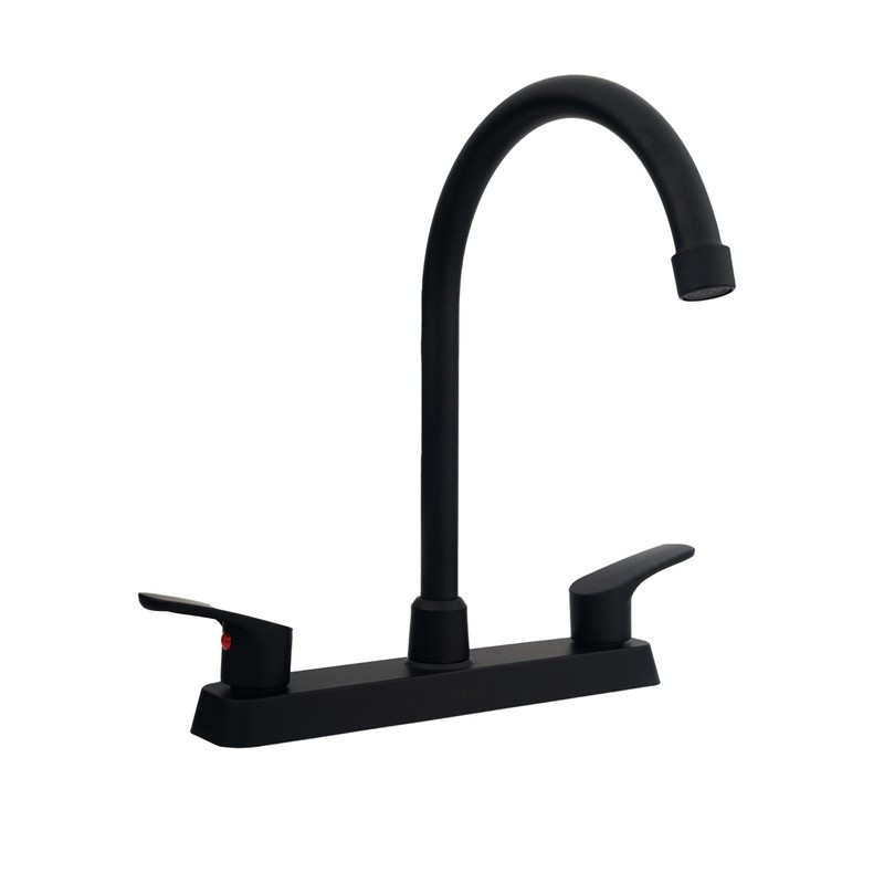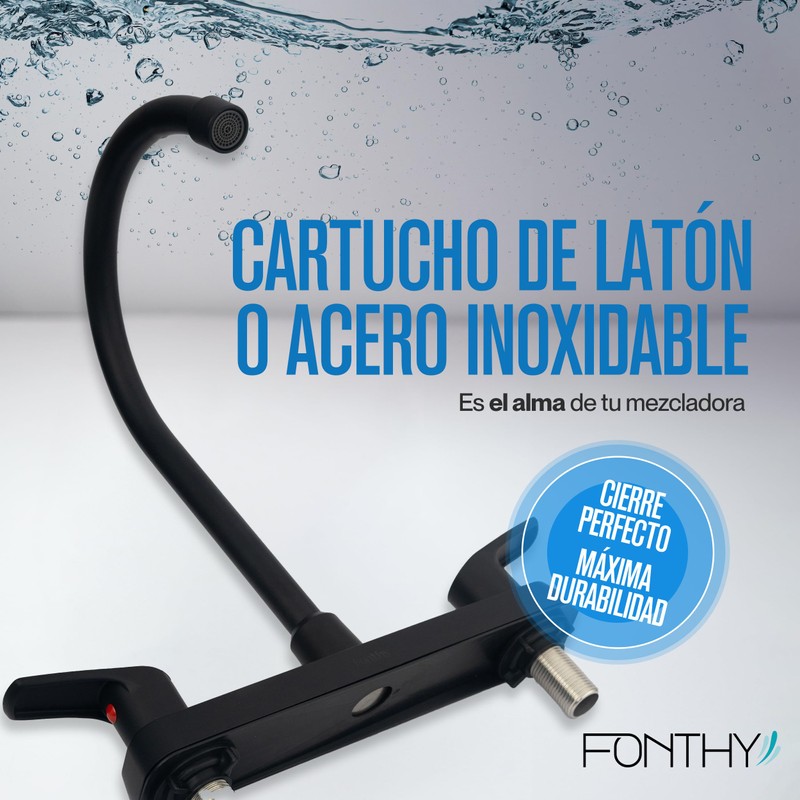 - MEZCLADORA CON ACABADO NEGRO MATE | Esta elegante mezcladora para lavabo combina un cuerpo de acero inoxidable con manerales y cuello de ABS en negro mate, aportando un diseño moderno y resistente a la corrosión para tu baño.
