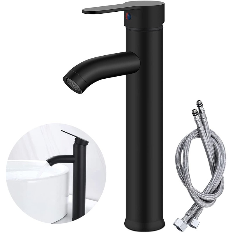 • 【Material Premium】El mezcladora para lavabo está hecho de acero inoxidable, con un acabado negro mate de diseño moderno, que puede resistir el desgaste, la corrosión, las altas temperaturas y evitar la decoloración y la oxidación. Los filtros de cerámica reducen los puntos de fuga y son lo suficientemente duraderos para combinar con muchos estilos de baño.