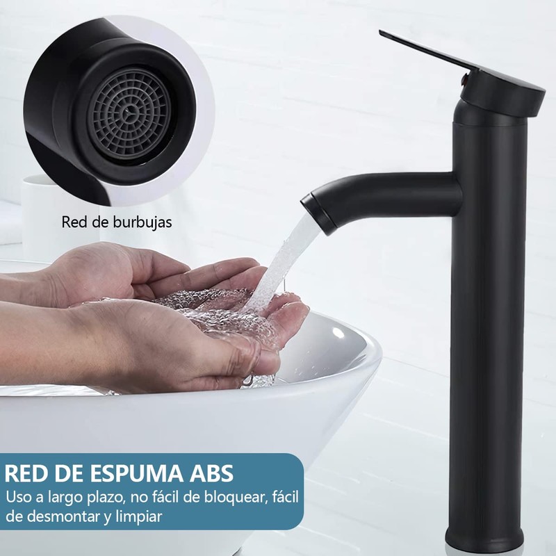 Acabado negro——El acabado negro mate de primera calidad resiste la abrasión y la corrosión,el mezcladora para lavabo complementa muchos estilos de baño,brindándole una experiencia de baño increíble.