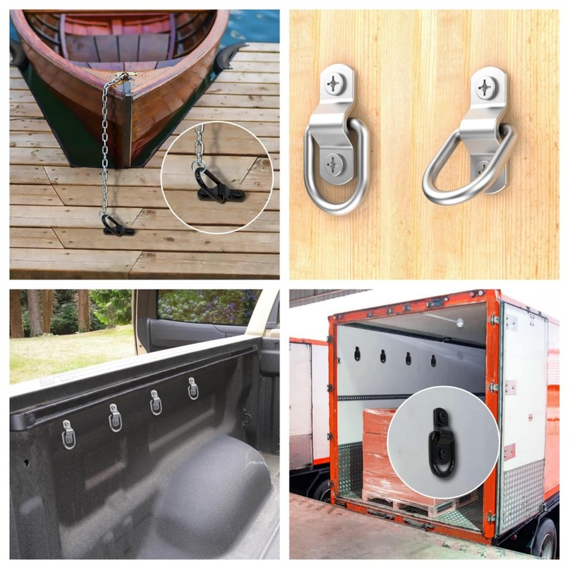 - The large hooks on these D-ring anchors provide a secure attachment point for your cargo. They prevent shifting and sliding during transportation, can ensure the safety of your goods.